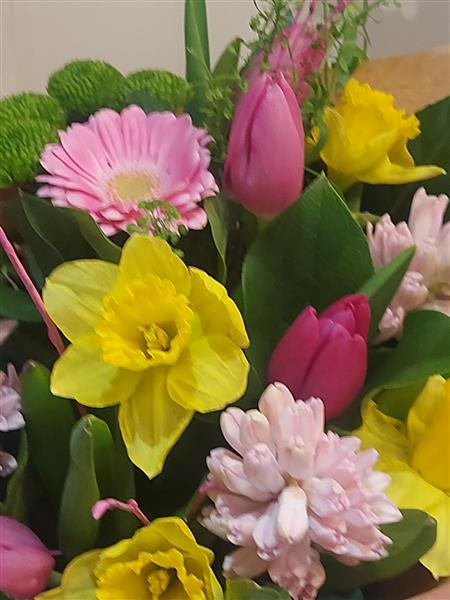 A bright and cheerful bouquet of fresh, spring flowers