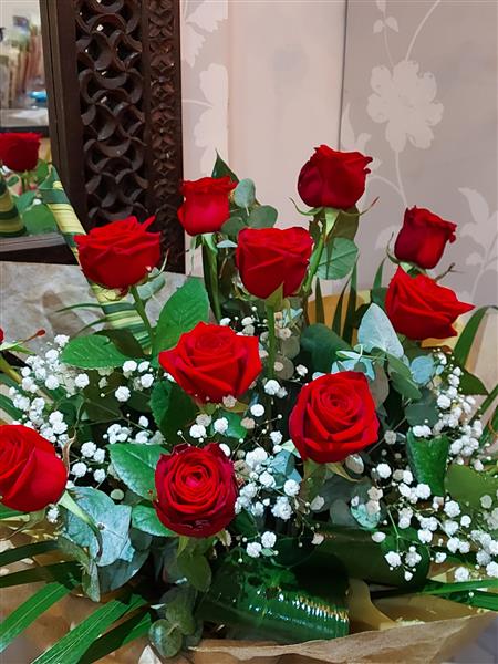 12 beautiful, long stemmed luxury red roses